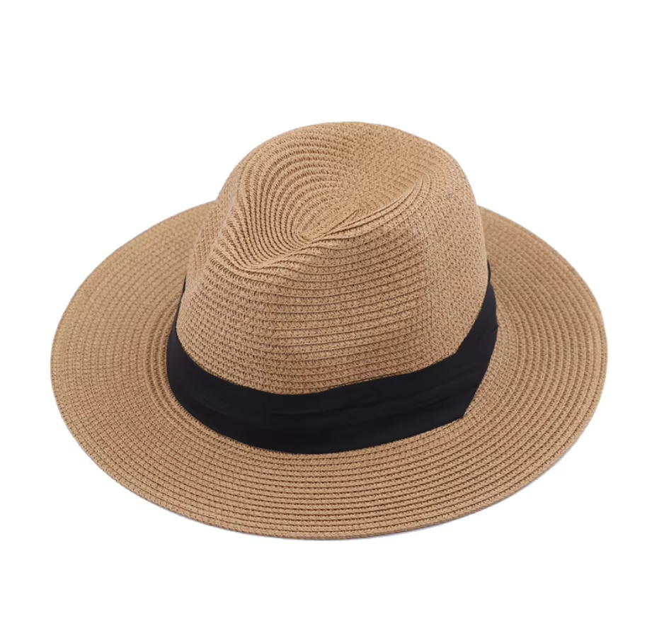 Wholesale Natural Panama Braid Straw Hat Wide Brim Summer UV Protection Fedora Breathable Floppy Sun Beach Hat for Casual Daily