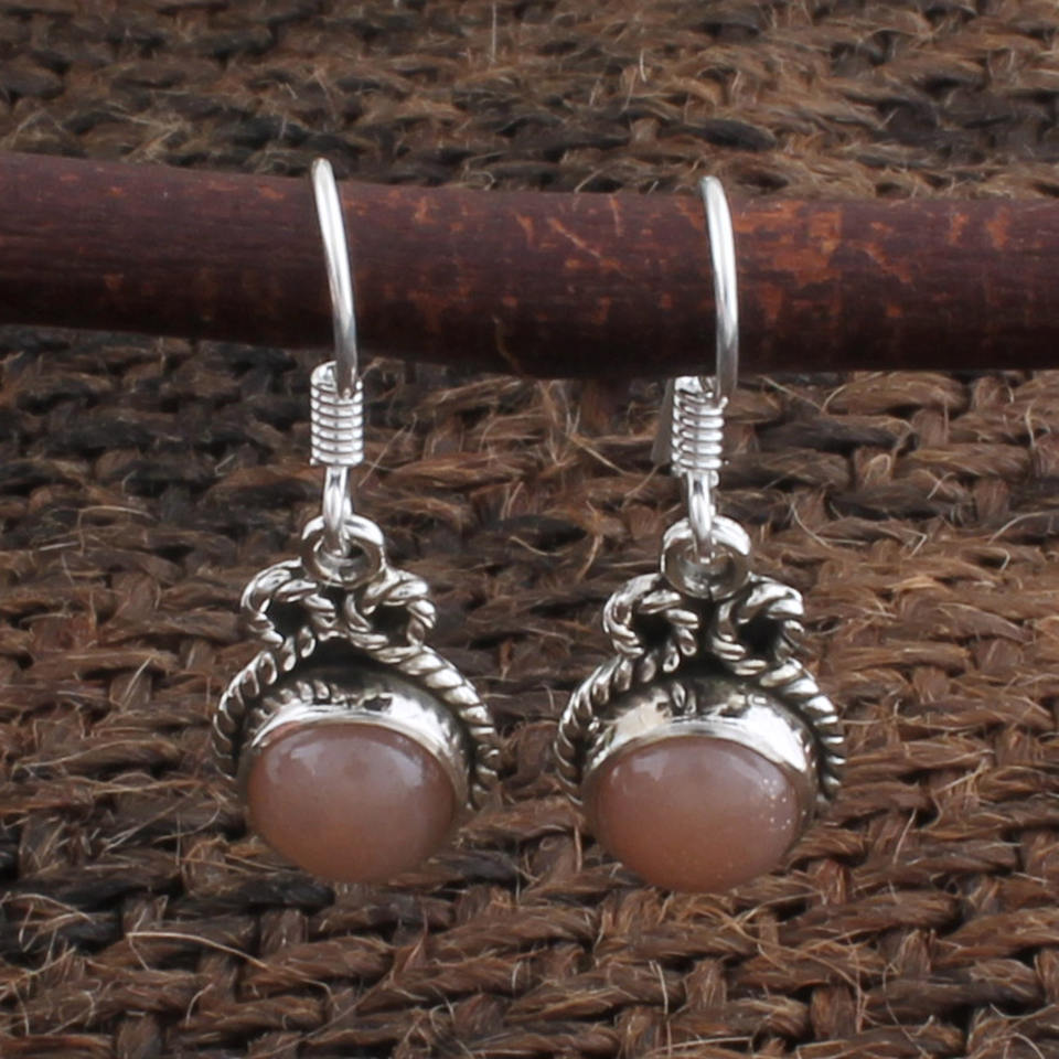 Wholesale Natural Peach Moonstone 925 Sterling Silver Luxury Water Drop Earrings for Women Wedding Fine Jewelry