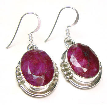 Wholesale Natural Pure sterling silver 925 natural red ruby quartz handmade simple bezel setting casual drop earrings