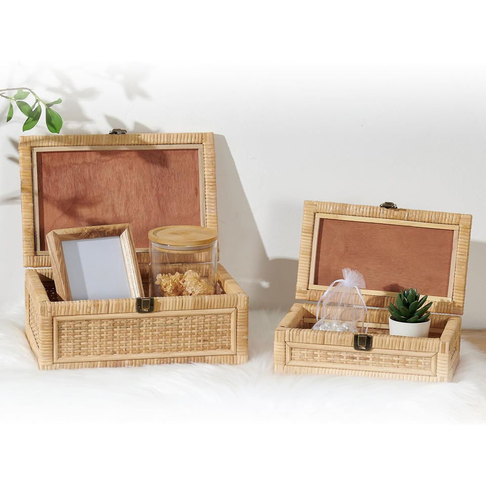 Wholesale Natural Rattan Storage Box Set Sustainable Organizer Box Decorative Storage Case Stackable Storage Box For Home Use
