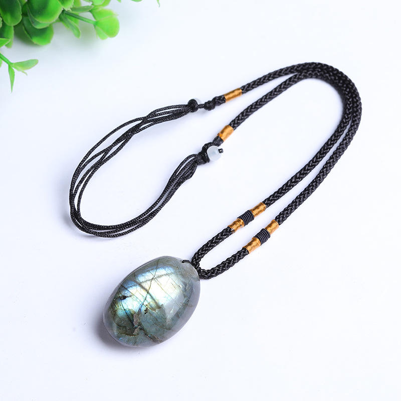Wholesale Natural Raw Moonstone Labradorite Pendant Necklace Blue Moonlight Flash Stone Braided Rope Necklace
