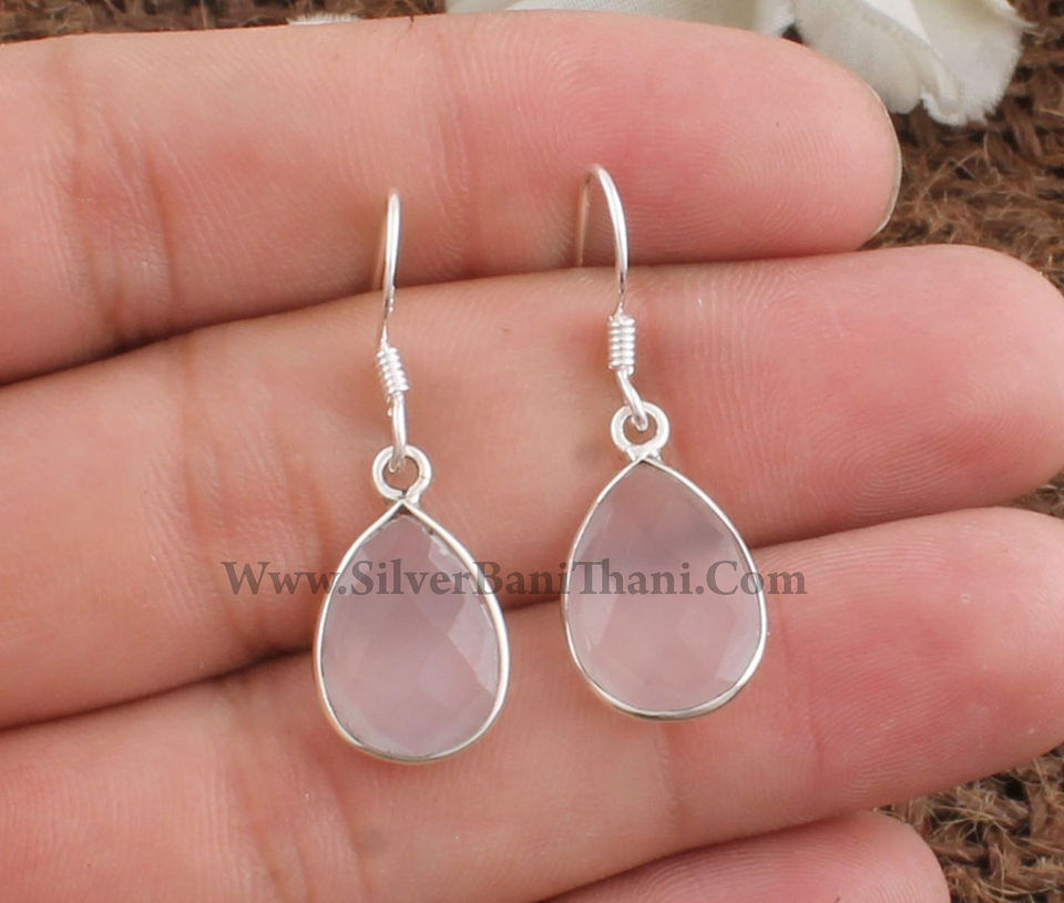 Wholesale Natural Rose Quartz 925 Sterling Silver Drop Earrings Women Healing Gemstone Jewelry Reiki Energy Wedding Gift Luxury
