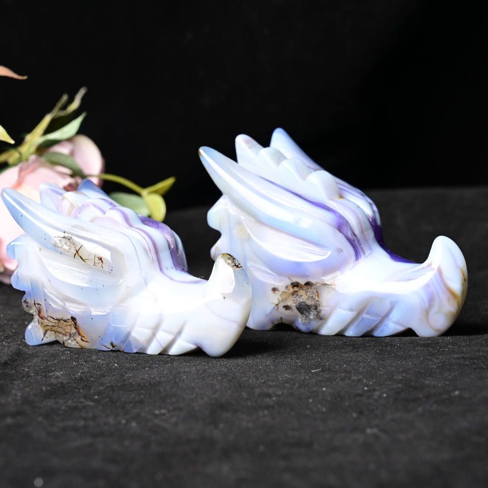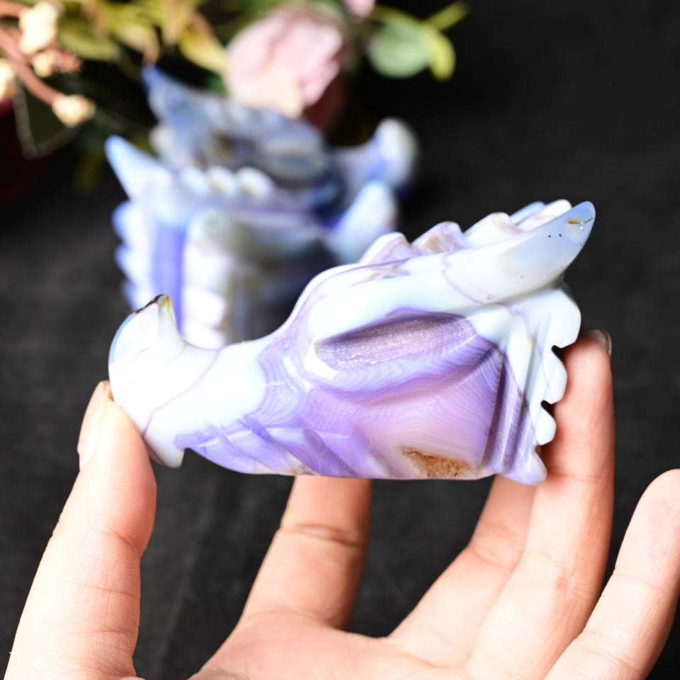 Wholesale Natural Stone Animal Blue Agate Geode Dragon Head Crystal Skulls Head for Decoration