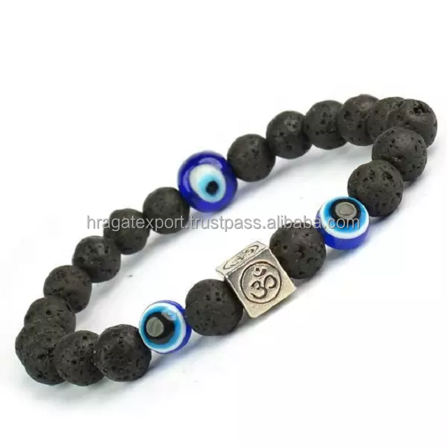 Wholesale Natural Stones Crystals Healing Gemstone Agate Moss Agate 8mm Beads With Evil Eye Gemstone Bracelet