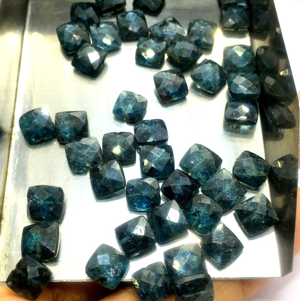Wholesale Natural Teal Moss Indigo Landon Blue Kyanite Faceted Cushion Shape Cabochon Loose Gemstone Per Carat Stone Beads