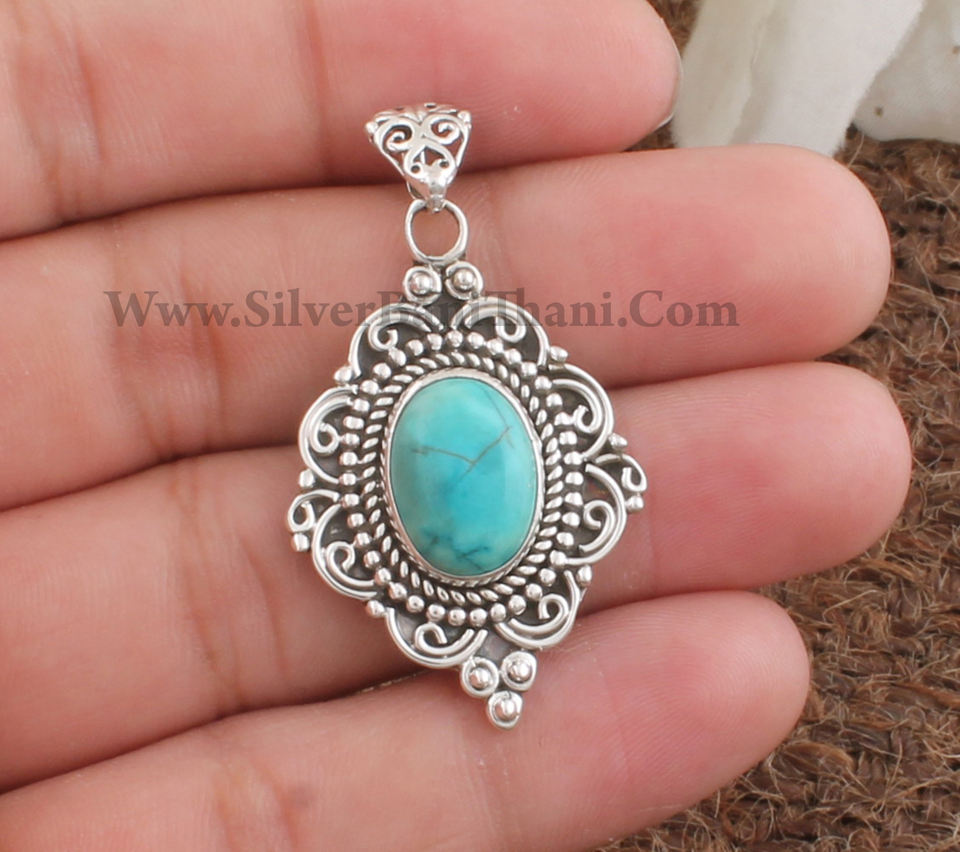 Wholesale Vintage Natural Turquoise Pendant 925 Sterling Silver Platinum Plated Oval Charm Jewelry Bulk Price Factory Direct