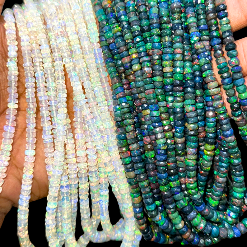 Natural Ethiopian Opal Faceted Rondelle Beads