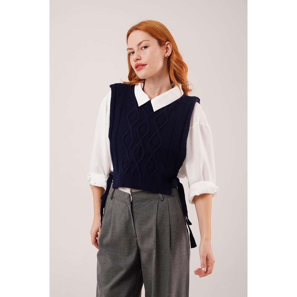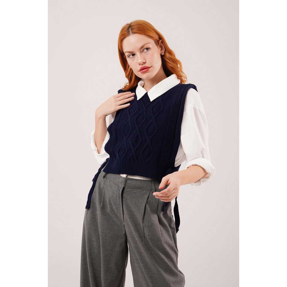Wholesale Navy Blue Woolen Knitted Sweater with Lace Detail for Outer Wear