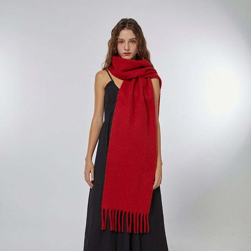 Wholesale New Arrival 20% Wool Thickened Solid Color Long Scarf With Tassels Women Winter Wool Scarf Shawls Scarves for Women
