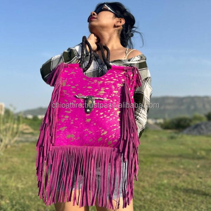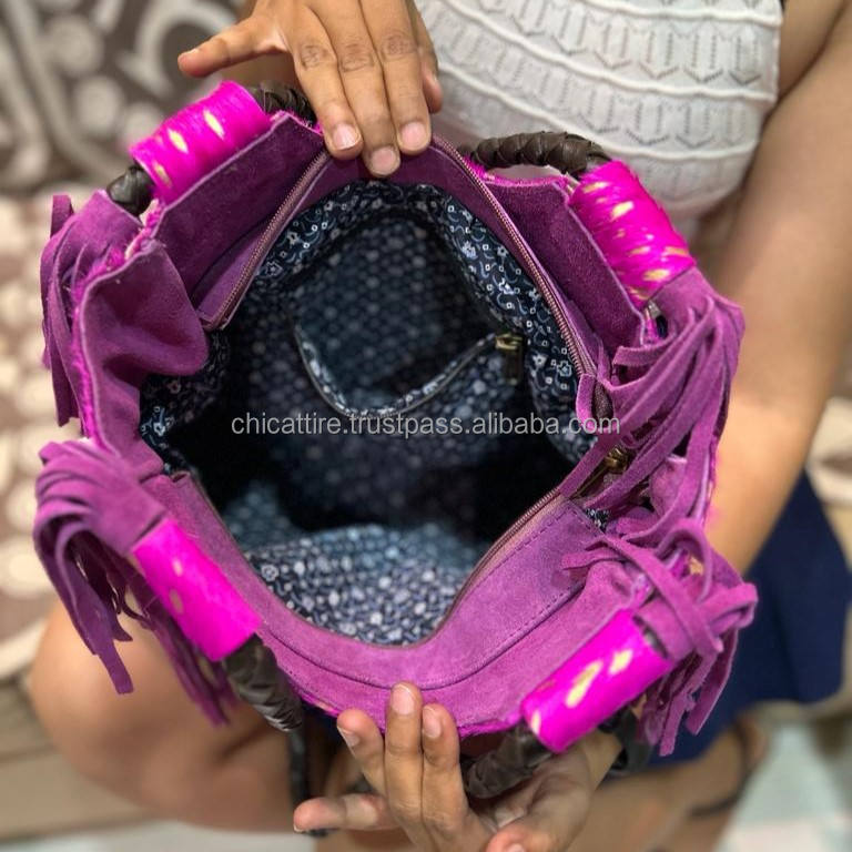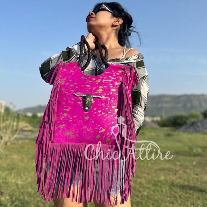Product name:Hair On Metallic Genuine Leather Fringe Tote Handbag