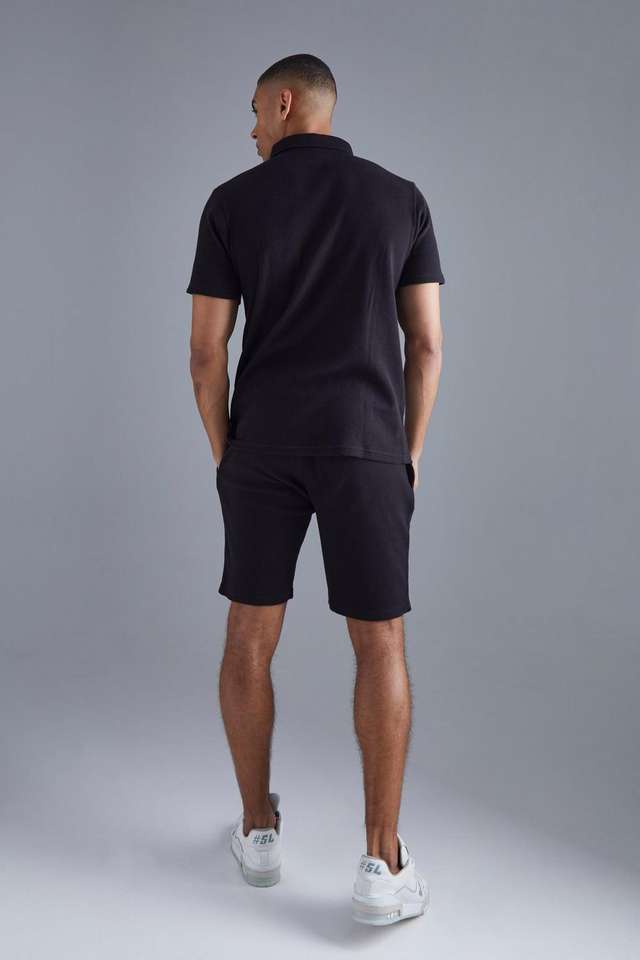 Wholesale New Custom Logo Factory Price Forest Green Slim Fit Waffle Polo Shirt & Short Set Gym & Workout Wear Men's 2 Piece Set