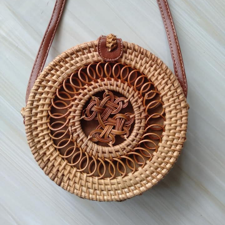 Wholesale New Design Vietnamese Handmade Weaving Rattan Bag Bali Woven Round Straw Shoulder Bags 99GD