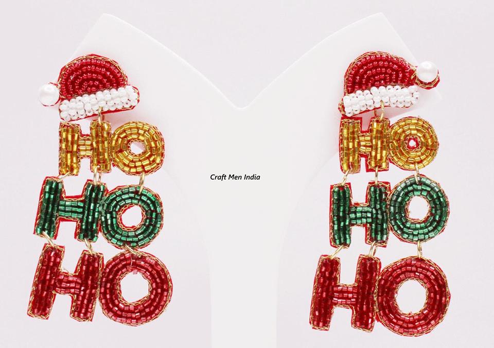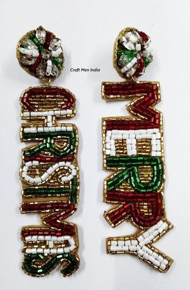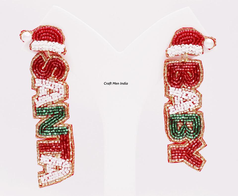 Wholesale New Elegant Pink Christmas Handmade Beads & Rhinestone Imitation Pearl Bow Tree Earrings for Women beaded earrings