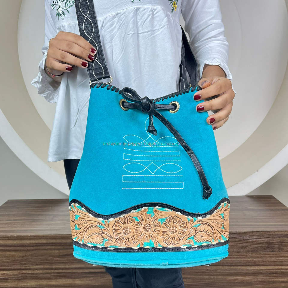 Product Type:Hand Tooled Suede Leather Bucket Bag