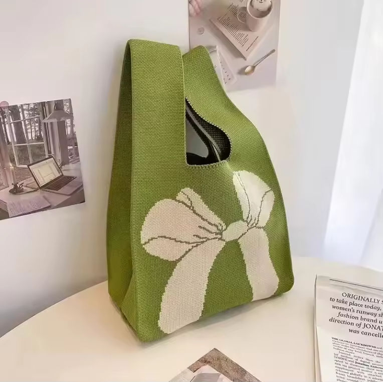 Wholesale New Fashion Small Size Handbag Cute Bow Vest Carrying Knit Bag with Plant Pattern Color Striped