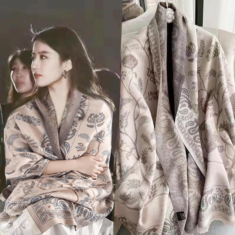 Wholesale New Fashion Winter Printed Polyester Cashmere-like Leaf Floral Warm Scarf Shawls Office Nap Blanket Women Scarves