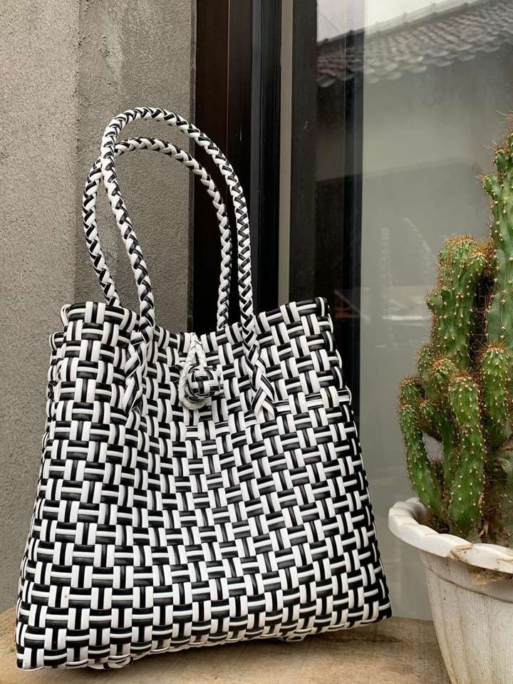 Wholesale New Fashion Women's Handmade Woven Bag Premium Plastic Material Handbag Lurik Pattern Made Recycled Weaving Apparel