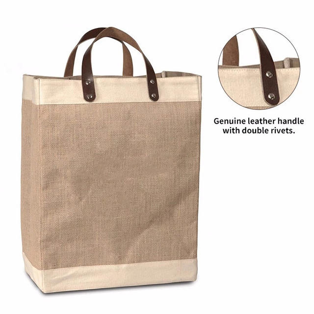 Wholesale New Jute Tote Bags with Soft Leather Handles Custom Logo & Floral Decor Fabric Lining Shopping Gifts