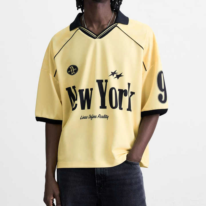 Wholesale New Summer Customizable Varsity T-shirt Trendy Lapel Collar Casual T-shirts Plus Size Graphic Varsity Jersey for Men