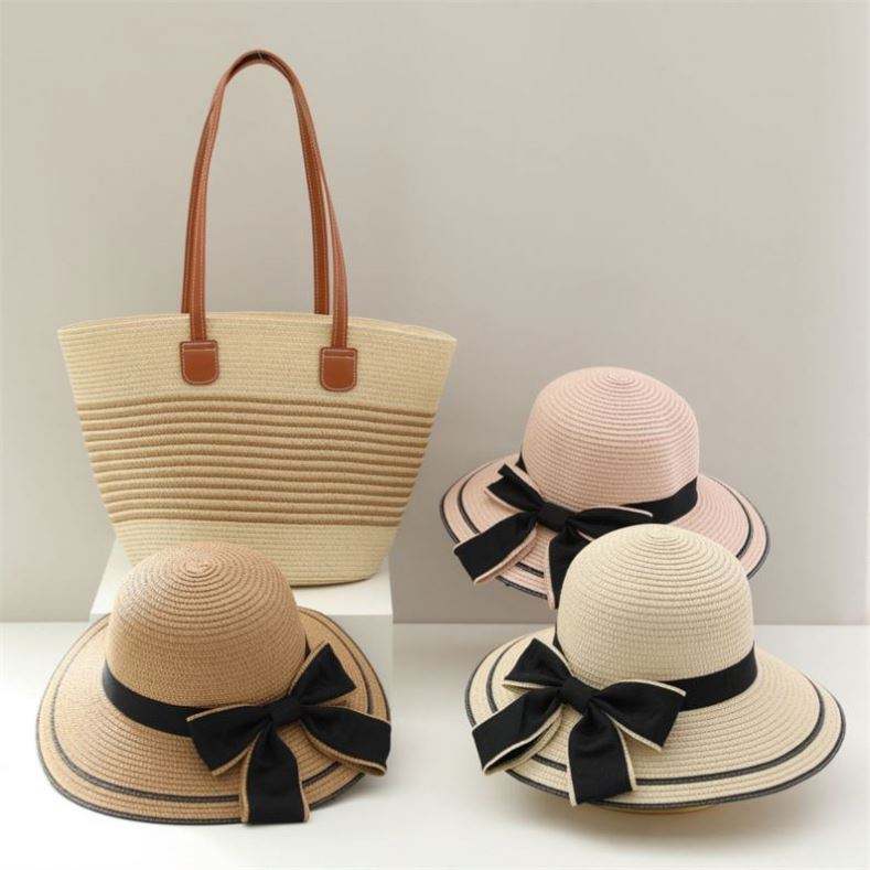 Wholesale New Tendy Women Large Capacity Summer Straw Woven Bag Two Piece Set Beach Straw Hat and Bag