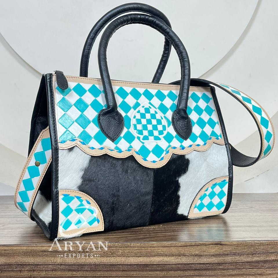 Hand Tooled Checkered Leather Crossbody Tote Bag