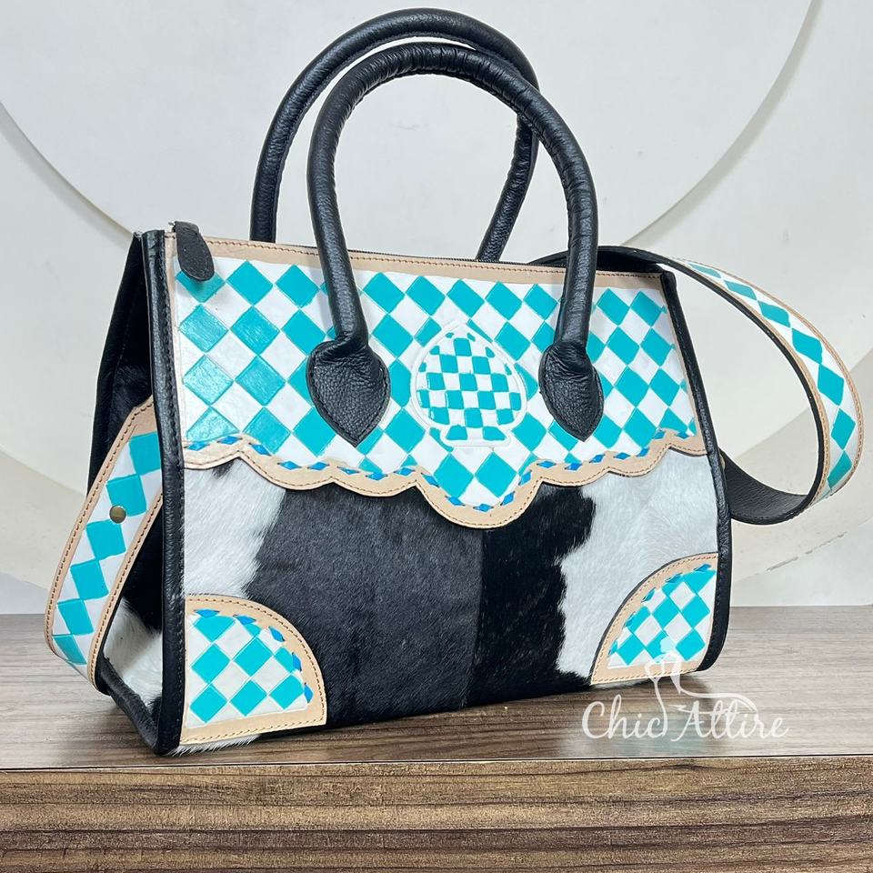 Hand Tooled Checkered Leather Crossbody Tote Bag