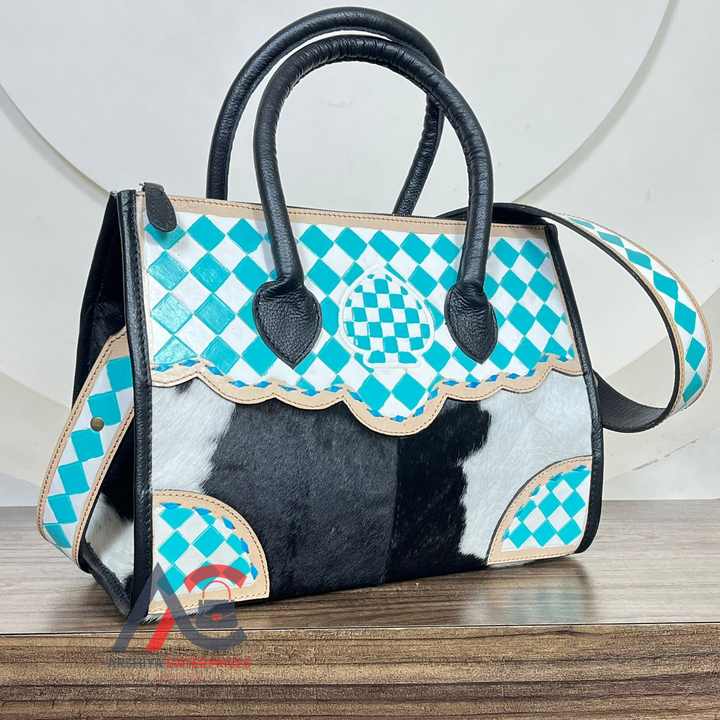 Product name:Hand Tooled Checkered Leather Crossbody Tote Bag