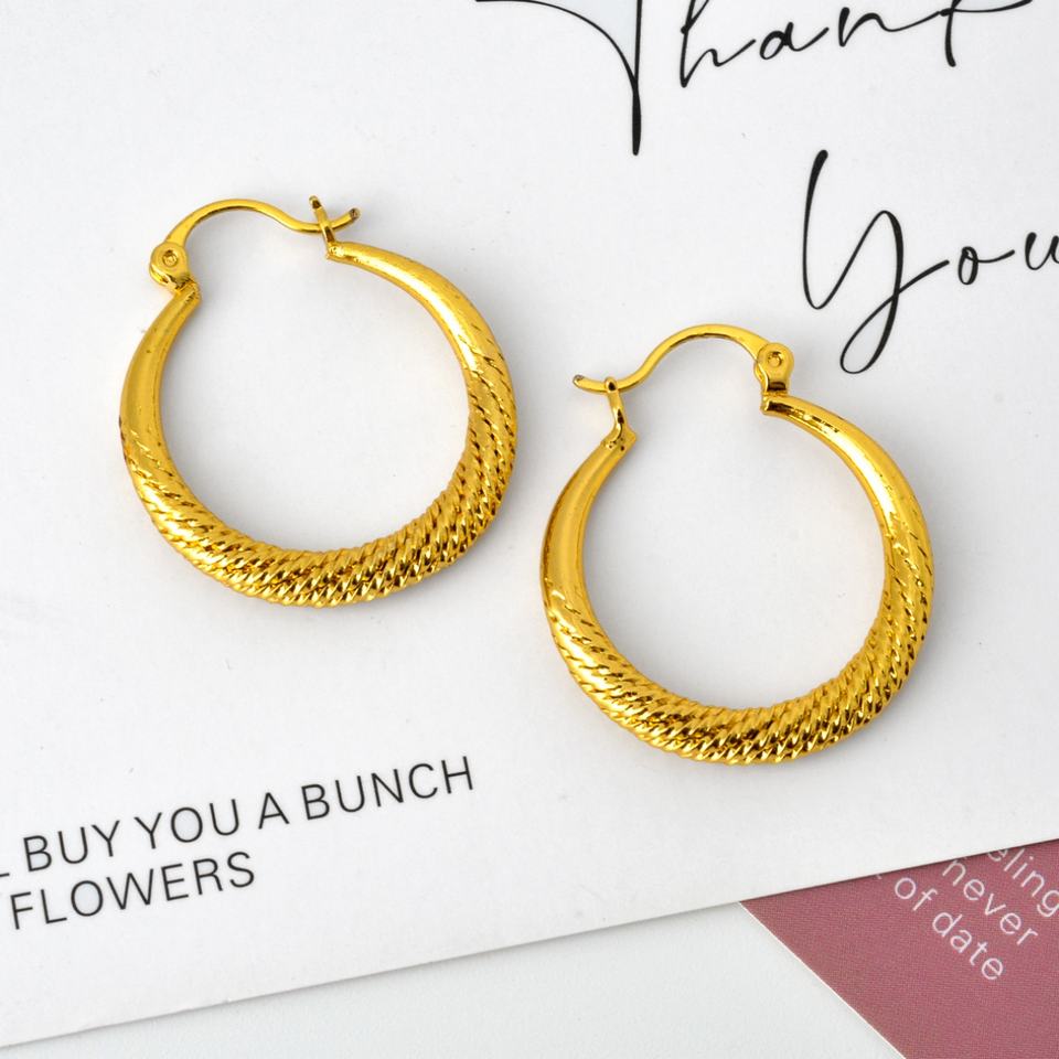 Wholesale New Classic 14K Gold Plated Brass Hypoallergenic Chunky Twisted Hoop Earrings for Women