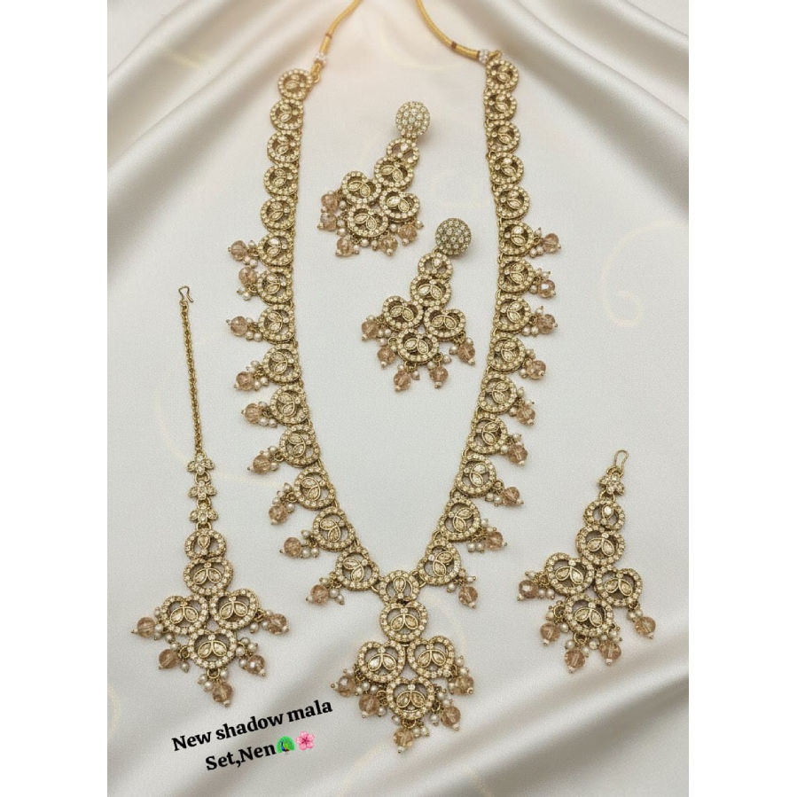 Wholesale New Vintage Copper Gold Plated Kundan Jewelry Set Long Mala Bridal Necklace Earrings Maang Tikka for Wedding Party
