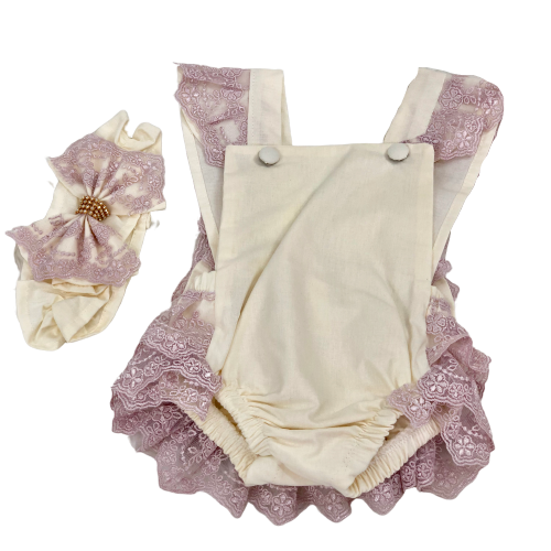 Wholesale Newborn New Design Summer Custom Cotton Knitted High Quality Beige Baby Girls Romper Set Modern Luxury Birthday Party