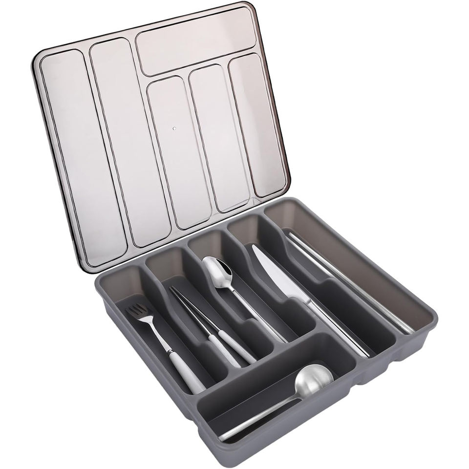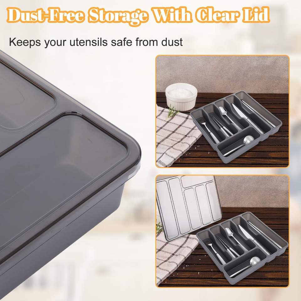 Wholesale Newest Kitchen Countertop Sliverware Organizer with Lid Covered Utensil Tray