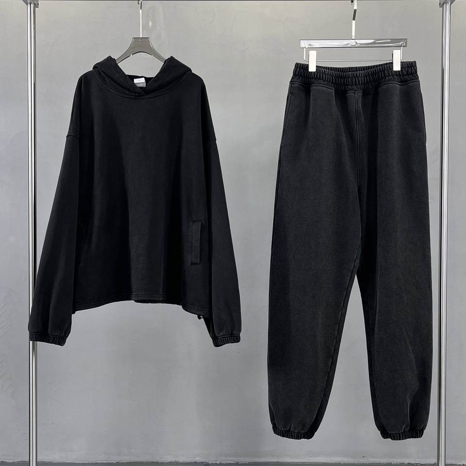Wholesale No String Heavyweight French Terry Hoodies Double Layer Acid Vintage Distressed Washed Hoodies Set
