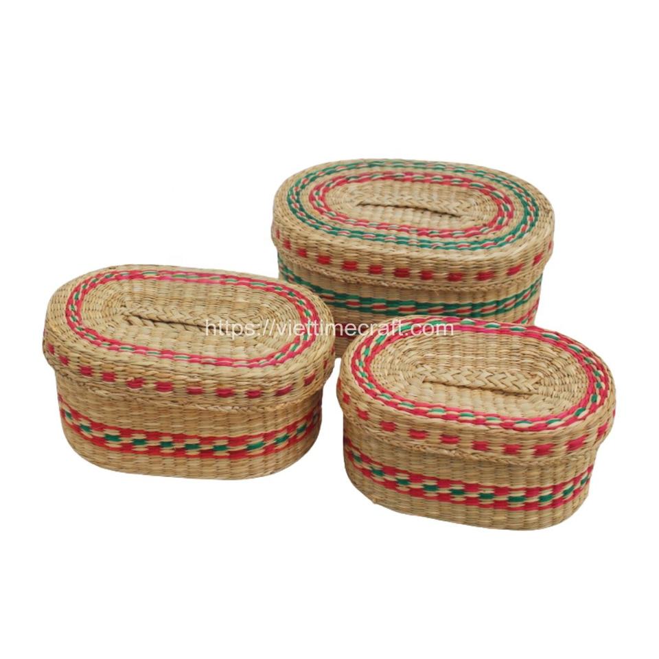 Wholesale Noel Touch Seagrass Storage Basket, Box and Bin With Lid Christmas Oval Shape Decoration