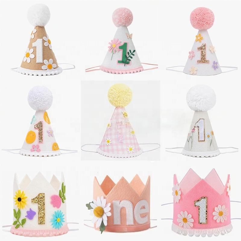 Wholesale Non-Woven Fabric Birthday Crown Hat for Baby Graduation Ramadan Party Adjustable Tie Strap Princess Crown