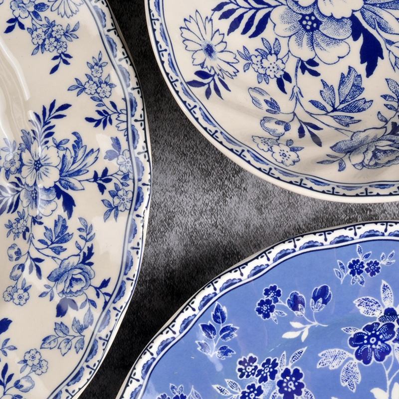 Wholesale Nordic Blue and White Underglaze Ceramic Dinner Plate and Cooffe Set