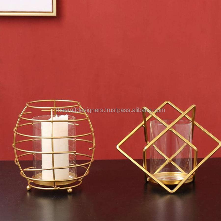 Wholesale Nordic Luxury Hexagon Rose Gold Hurricane Geometric Metal Tea Light Tealight Candle Holder For Home Garden Decoration