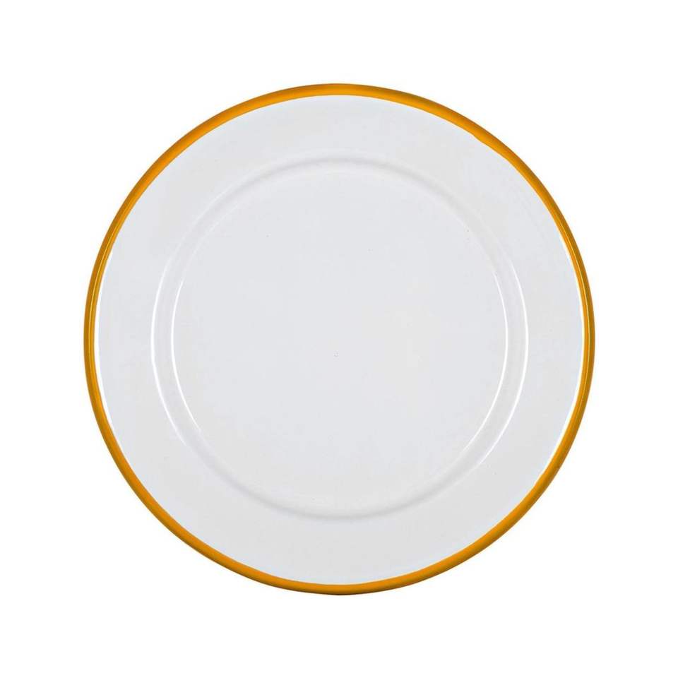 Wholesale Nordic Minimalist Metal Enamel Charger Plate White Underplate with Black Rim for Wedding Event &Luxury Hotel Tableware
