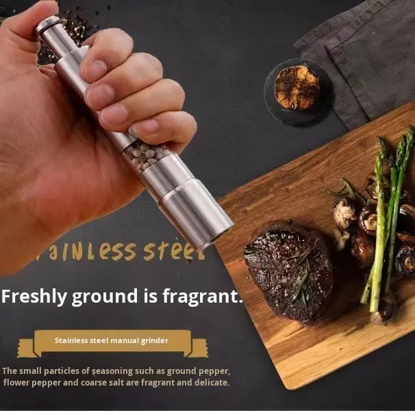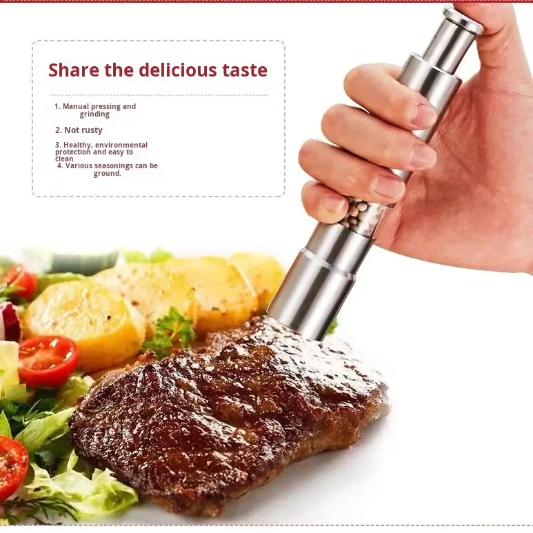 Wholesale Novelty Thumb Push Pepper Mill Portable Salt Manual Shaker Stainless Steel Spice Barbecue Kitchen