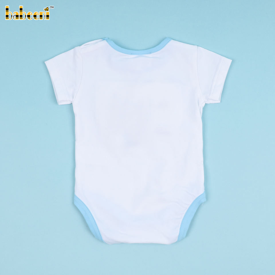 Wholesale ODM Baby Boys Summer Rompers Blue Accent Bubble Smocked Animals 100% Cotton Short Sleeve Snap Button Closure OEKO-TEX