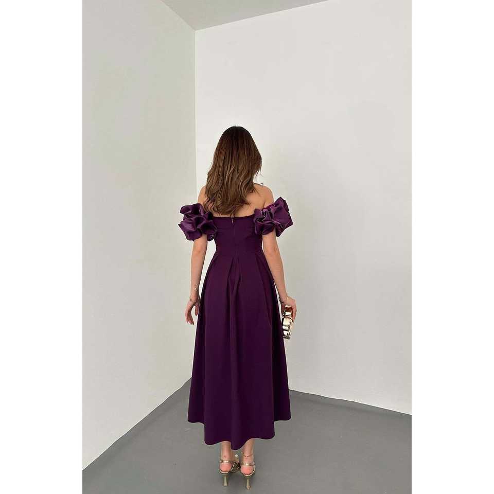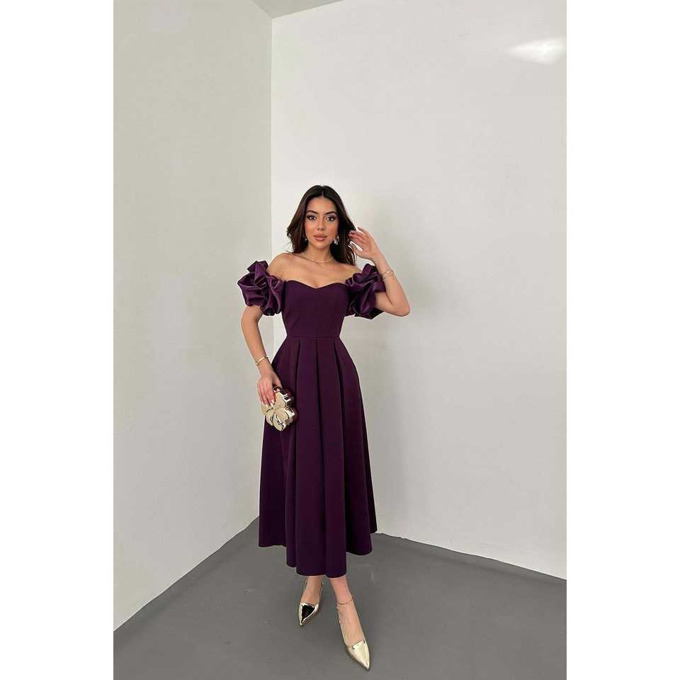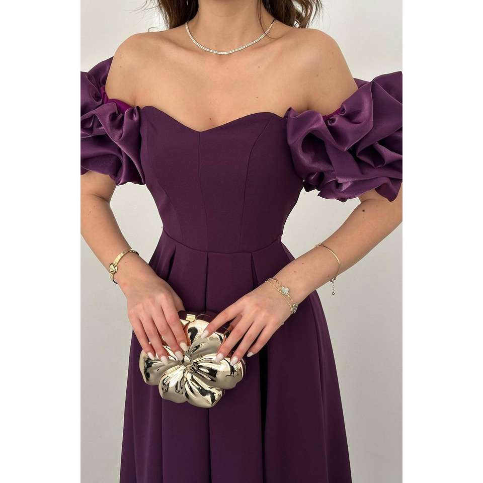 Wholesale ODM Vintage Ball Gown Evening Dress Purple Satin Balloon Pleats Embroidered Pattern Empire Waistline Party Style XL