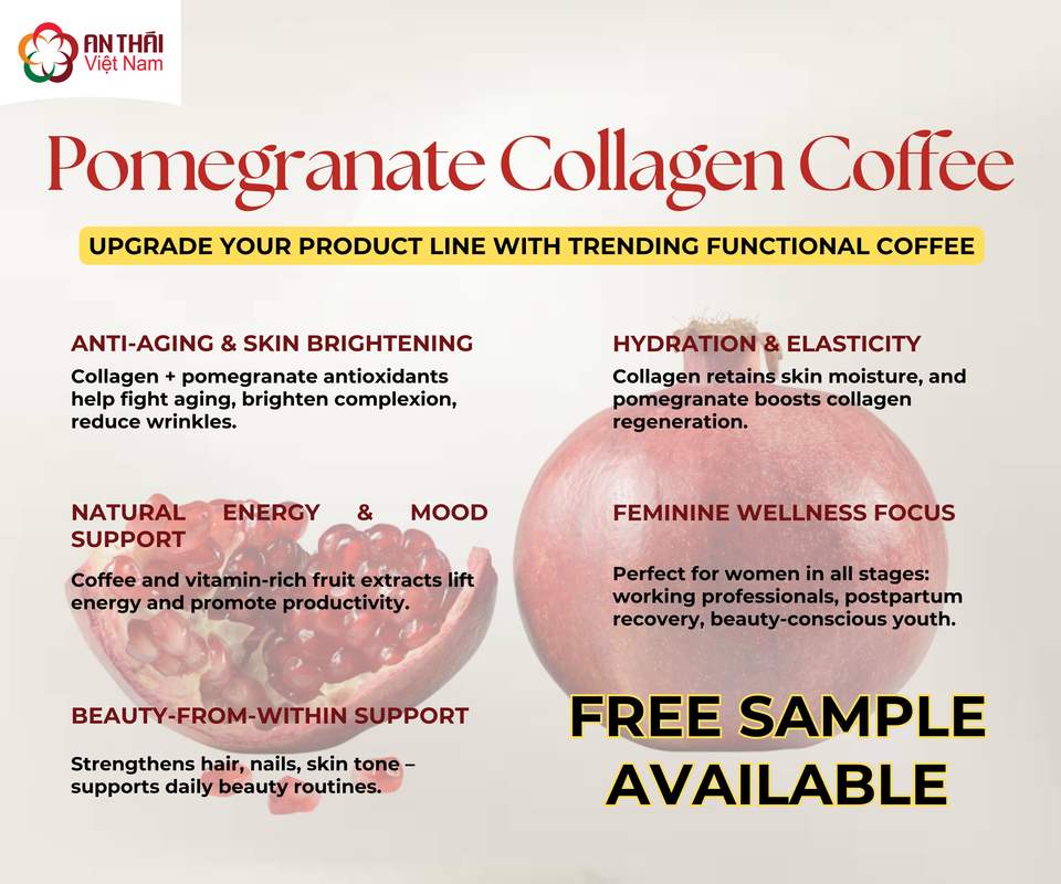 Wholesale OEM 6in1 Pomegranate Collagen Instant Coffee Mix Functional Beauty Coffee for Woman Bulk 25kg bag for Repacking