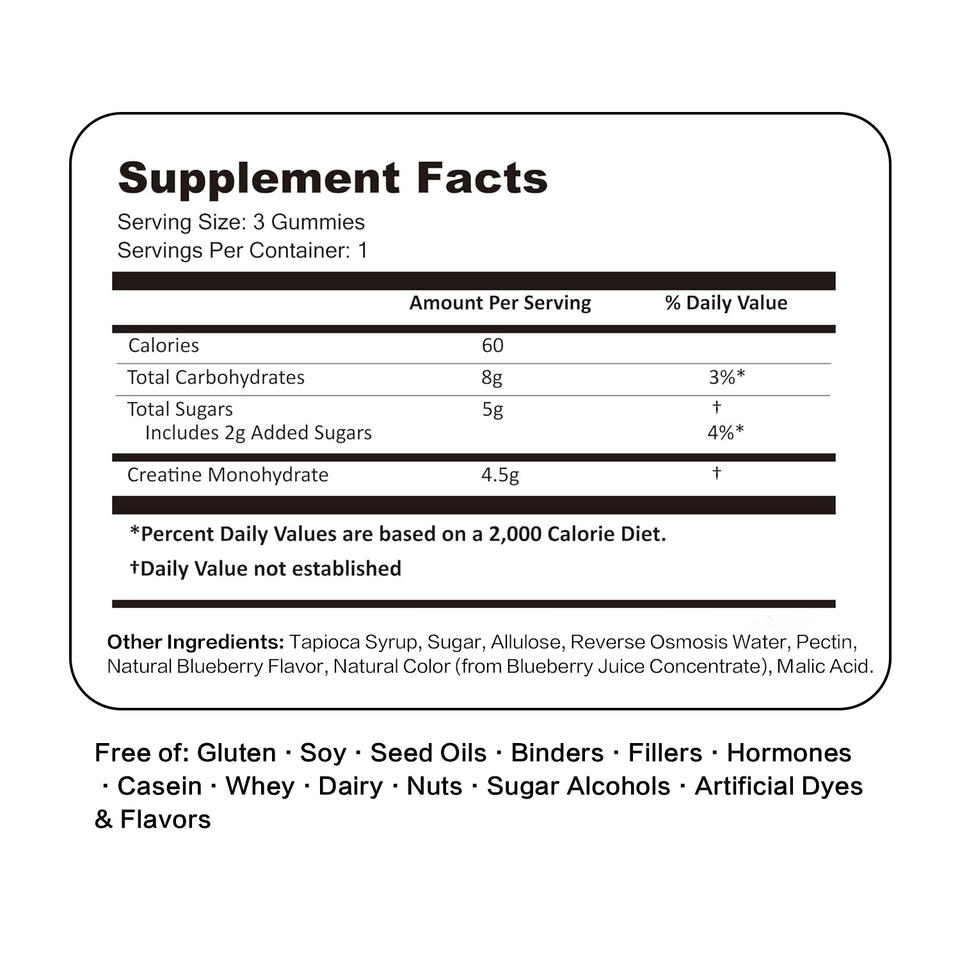 Wholesale OEM Creatine Gummies Blue Raspberry Flavor 5g Muscle Growth Strength Athletes Non-GMO Vegan Sugar Free Private Label