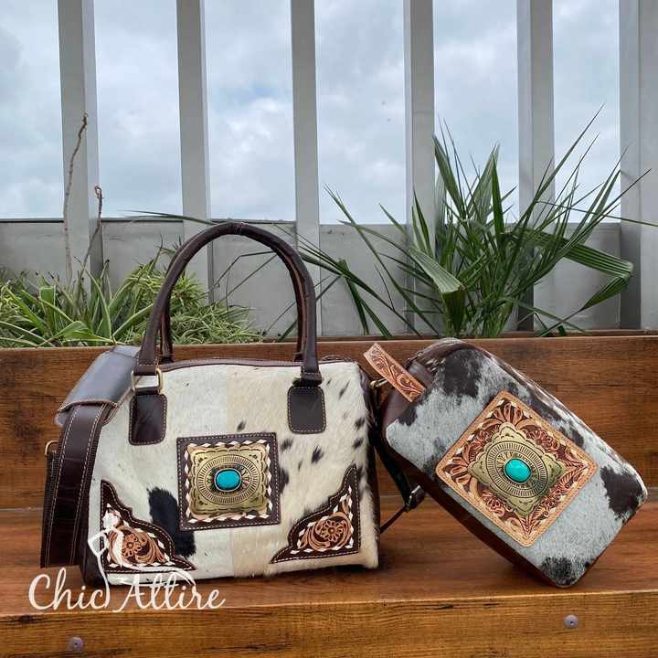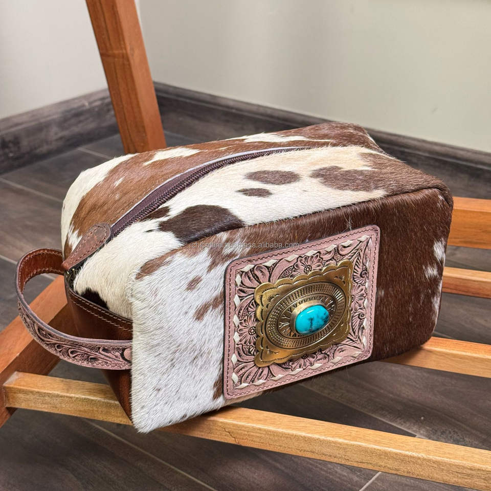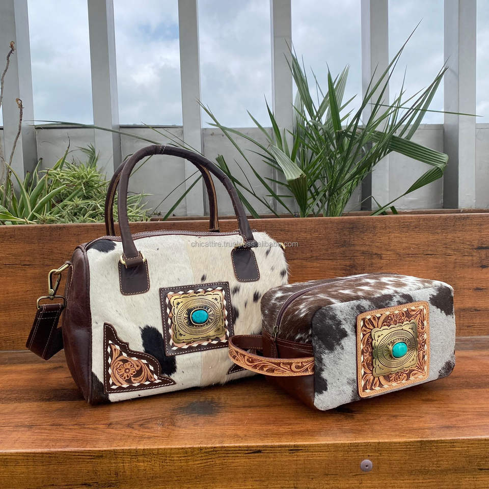 Product name:Tooled Cowhide Mini Duffel Bag & Toiletry Bag Combo sets