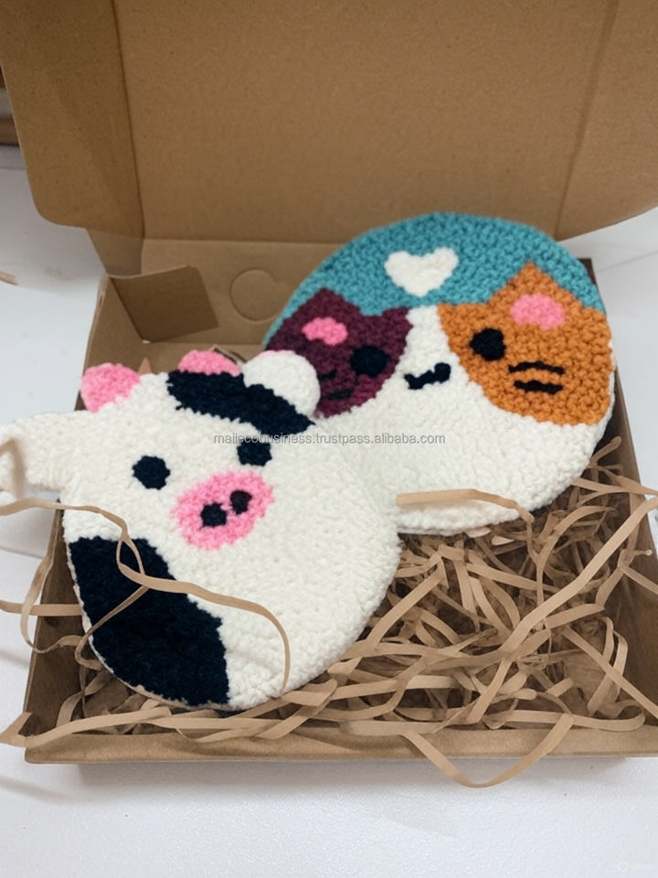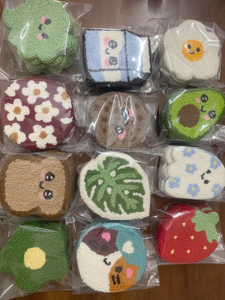 Wholesale OEM Cute Lovely Handmade Punch Needle Coasters Non-Slip Mug Rug and Desk Mat Gifts Idea