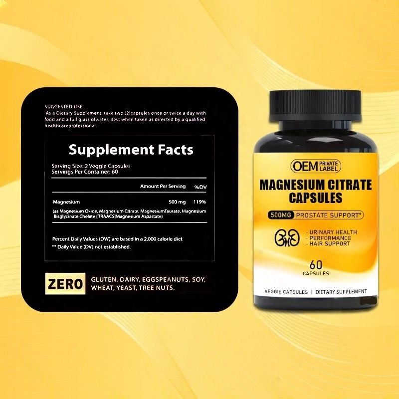 Wholesale OEM Magnesium Citrate Capsule 500Mg Healthcare Supplement Help Digestion Magnesium Citrate Capsules