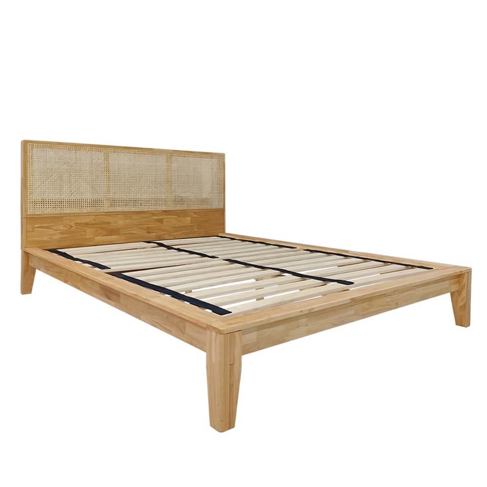 Wholesale OEM/ODM Eco-Friendly Platform Wooden Bed Frame with Rattan Headboard Queen Size Platform Bed Vietnam Factory