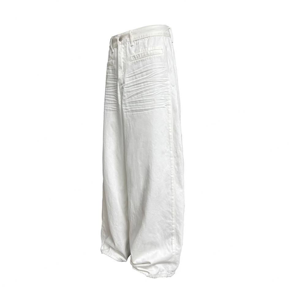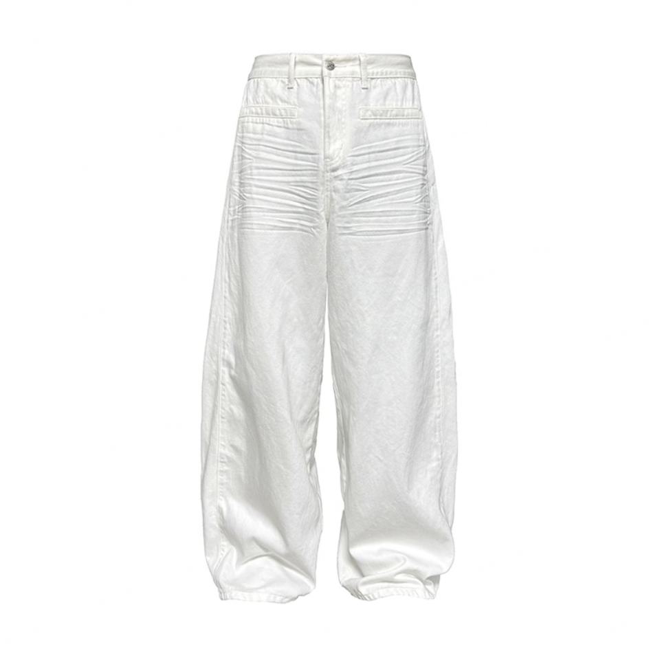 Wholesale OEM Service Classic 100% Cotton White Denim Unisex Style Straight Jeans Fashion 3D Whisker Zipper Fly Baggy Men Jeans