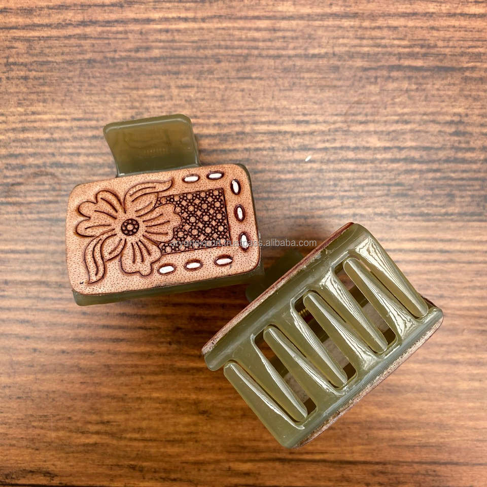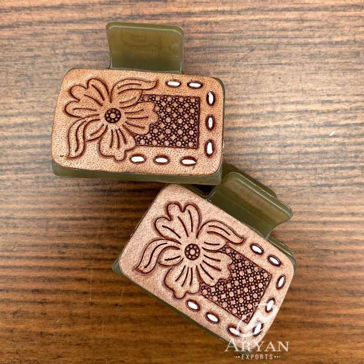 Product name:Tooled Engraved Leather Mini Hair Claw Clips