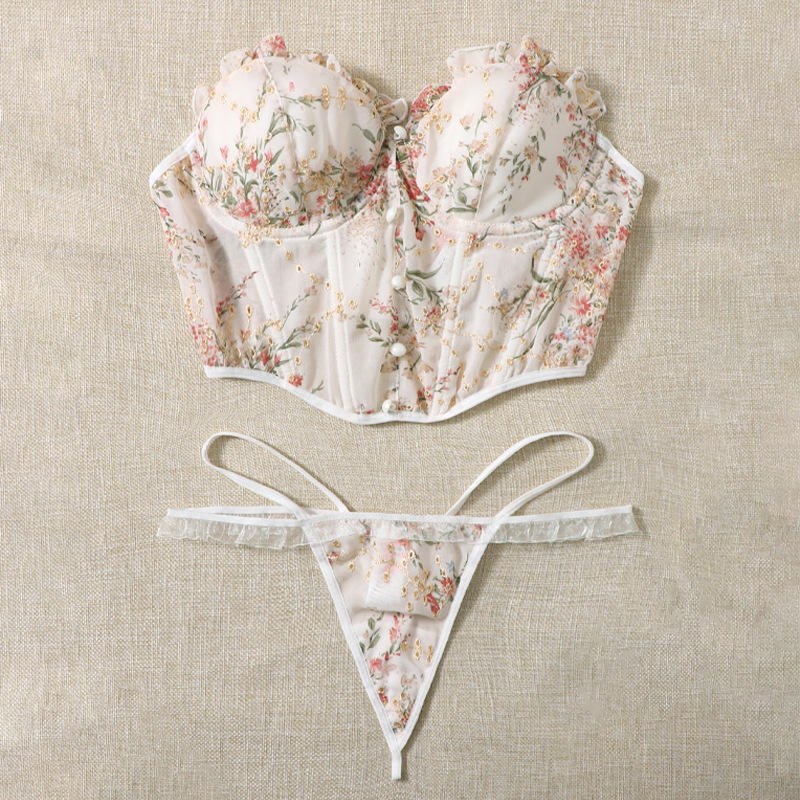 Wholesale OEM Supplier Export Factory's Sexy 2-Piece Lace Bra Panties Lingerie Set High Adjustable Underwear for Logo Print