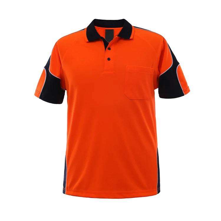 Wholesale OEM Workwear Quick Dry Hi Vis Safety Polo T-Shirt Work Construction Reflective Polo Shirts Custom Solid Orange Color